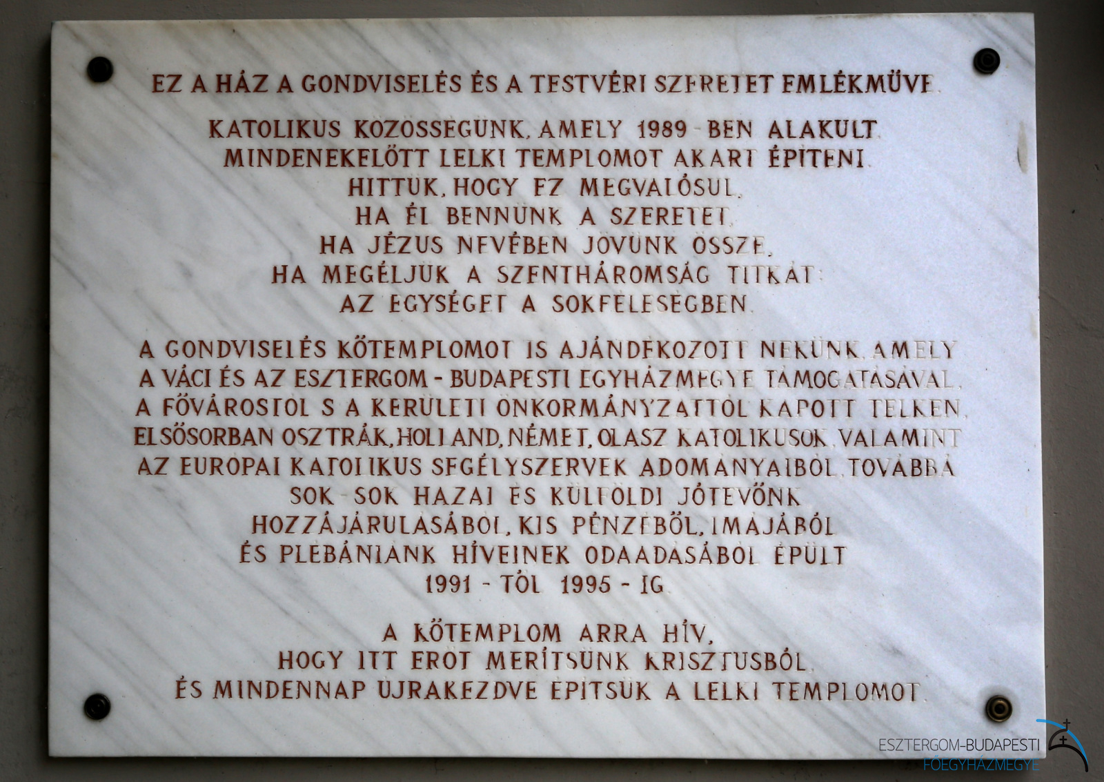 Az 1983–90 közt épülő új lakótelepen a Váci Püspökség 1989-ben hozza létre a plébániát. Dr. Tomka Ferenc plébános és Jávorka Lajos káplán egy tömbházban vásárolt lakásba költöznek, és 6 éven át ez lesz a lelkipásztori munka központja, a plébániai összejövetelek s a hétköznapi misék helye. A vasárnapi és ünnepi istentiszteletekre a közösség használhatta a lakótelep egyetlen 300 főt befogadó nagytermét, amely a politikai fordulatig a Kommunista Párt, majd utána az Önkormányzat tulajdona. A rendkívülien szekularizált lakótelepen, amelyen többségében fiatal családok (sok rendôr és katonatiszt) lakik, kezdetben 80–l00-an vettek részt a szentmisén. A közösség elsődleges céljaként kitűzött kölcsönös szeretet hatására nagyszámú felnőtt és fiatal tért meg. Főként általuk a templom elkészülésének idejére az egyházközséghez tevékenyen kapcsolódók száma 800 fôre nőtt. A templomnak az állami hatóságok eredetileg a lakótelep szélén jelöltek ki helyet. Hosszú küzdelemmel sikerült elérni, hogy a telep közepén épülhessen. A templom, illetve plébániaközpont alapkövét 1991-ben Marosi Izidor váci megyéspüspök tette le, megáldását 1995-ben Paskai László bíboros, esztergom-budapesti érsek végezte. Az épületegyüttes földszintje (1400 m2) magában foglalja a szentségi kápolnát (75 m2), amely a hétköznapi misék, a csend és az imádság helye, a nagytermet (400 m2), ahol a vasárnapi szentmisék és különböző összejövetelek, rendezvények is folynak, valamint hittantermeket, irodákat, papi lakásokat. Az alagsorban (1000 m2) helyezkednek el: az urnatemetô (Szôlôssy Enikő művészi szobraival), a karitász helységek, garázsok, raktár, műhely, tornaterem. A tetőtér (800 m2) beépített egyharmada egy lakrész, amelyben 3 szociális testvér lakik 1994 óta. Ôk vezetik az épületben működő mentálhygiéniás-családgondozó központot. A plébániaközpontot az alapító lelkipásztorok és a közösség elgondolásának megfelelôen B. Greskovics Klára és Becker Gábor építész-házaspár tervezte. A plébánia az 1993-as egyházmegyei határrendezés során került a váci egyházmegyétől az esztergom-budapesti főegyházmegyéhez.