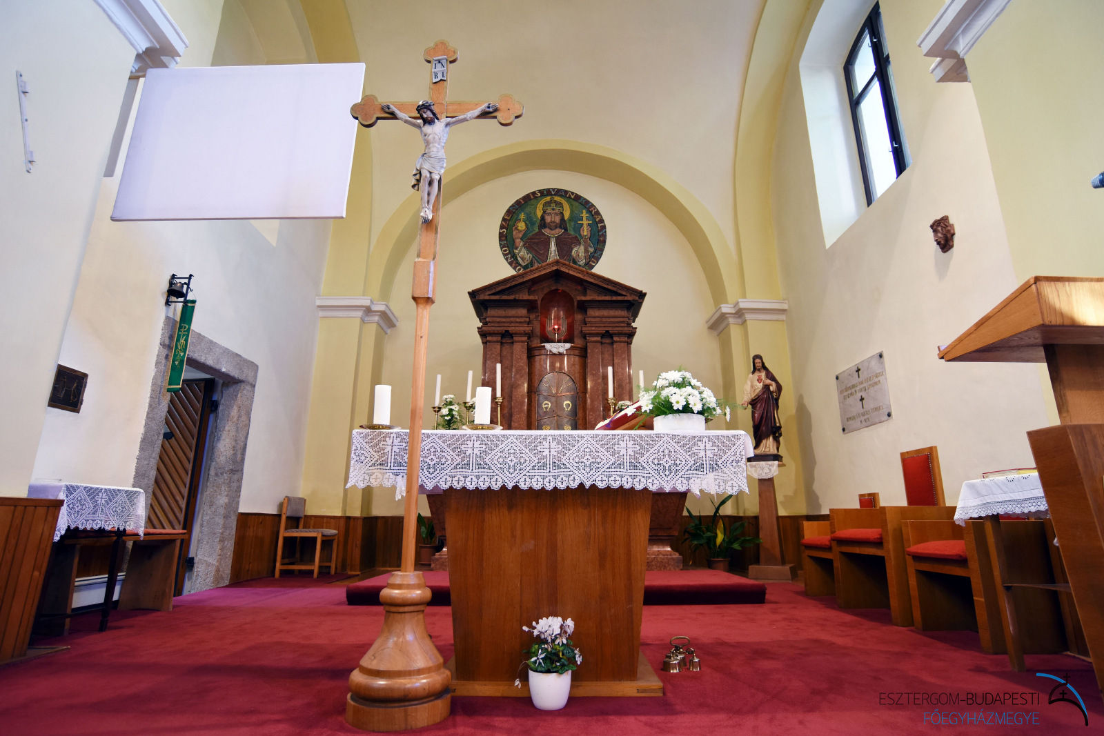 1927-ben Cesare Orsenigo pápai nuncius látogatta meg a plébániát. Mindent rendben talált, leszámítva, hogy az oltárkövet még mindig nem helyezték be az oltárba és nem szentelték fel az oltárt. 1933–34-ben rendezték ezt, bár az utasítás ellenére nem 40×40 cm-es mélyedést véstek (hogy a korporálé elférjen rajta), csak 8×8 cm-est. Shvoy Lajos püspök püspök ereklyét is küldött az oltárba. Miller József pápai prelátus, budakeszi plébánost bízta meg az oltár felszentelésével, de „mivel a templom benedicalva van”, csendben, a nép részvétele nélkül.